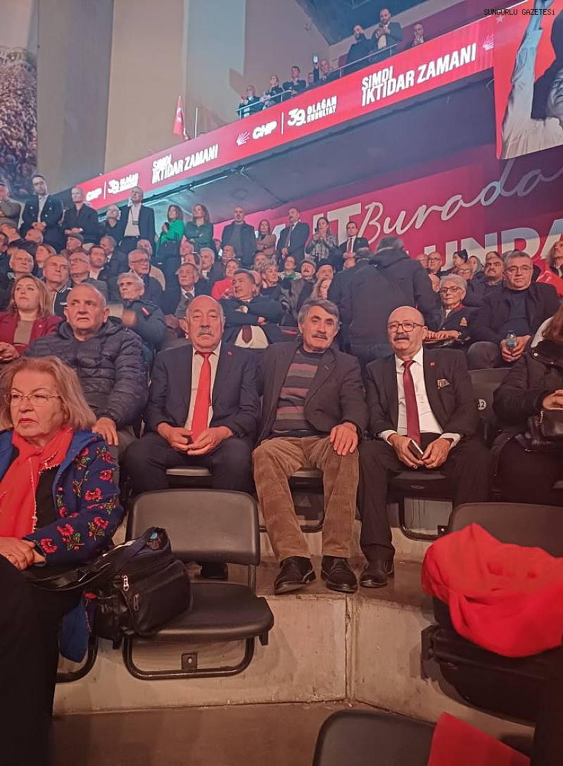 Cumhuriyet Halk Partisi'nin 39. Olağan Kurultayı Ankara Spor Salonu'nda gerçekleştirildi. Kurultayda Özgür Özel, geçerli oyların tamamını alarak tekrar genel başkan seçilirken, kurultaya Sungurlu’dan da katılım oldu. CHP Sungurlu İlçe Başkanı Akif Batak, Başkan Yardımcısı Cavit Küpcü, Bilişim Sekreteri Hamza Yarayan, Kadın Kolları Başkanı Hilal Barış, yönetim kurulu üyeleri Satı Çeçen, Alaattin Barındık ve Kamil Barış kurultaya katılarak Genel Başkan Özgür Özel’e destek verdi.