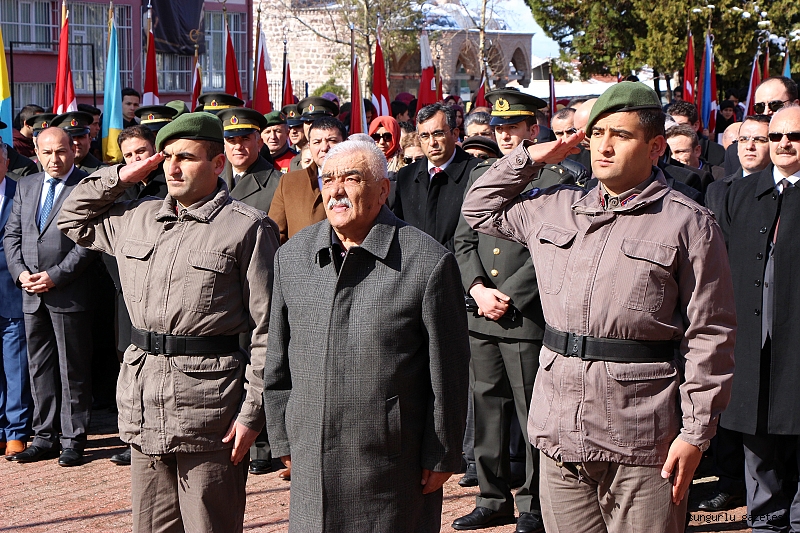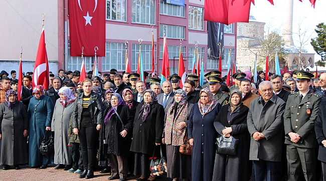 Atatürk Meydanında ki Atatürk Anıtı’na çelenk sunumu, saygı duruşu ve İstiklal Marşı’nın okunmasıyla başlayan törende, günün anlam ve önemini belirten “Çanakkale Şehitlerine” adlı şiiri Şehit Ali Alıtkan Anadolu İmam Hatip Lisesi öğrencisi Betül Leylek okudu.
