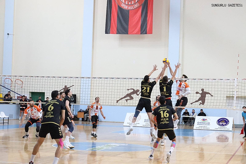 Mahmut Atalay Spor Salonunda oynanan maç çok çekişmeli başladı. Karşılıklı sayılarla geçen bu sette heyecan uzatmaya kadar devam etti. 24-24 eşitliğin ardından ikinci uzatmada Sungurlu Efeleri üst üste iki sayı bularak seti 27-25 kazanarak 1-0 üstünlüğü yakaladı. İkinci sette ilk sette olduğu gibi büyük bir çekişmeye sahne oldu. Karşılıklı sayılarla geçen bu setin final bölümünde tecrübe ise rakibini iki kez hataya zorlayan Sungurlu Belediyespor seti 25-23 alarak maçta 2-0 üstünlüğü yakaladı ve rakibin direncini düşürdü.