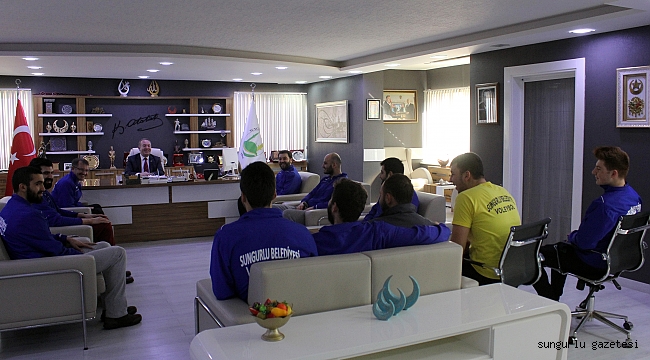 Sungurlu Belediyespor voleybol takımı hafta sonu İstanbul Büyükşehir Belediye ile oynayacakları maç öncesi Belediye Başkanı Abdulkadir Şahiner’i ziyaret etti.