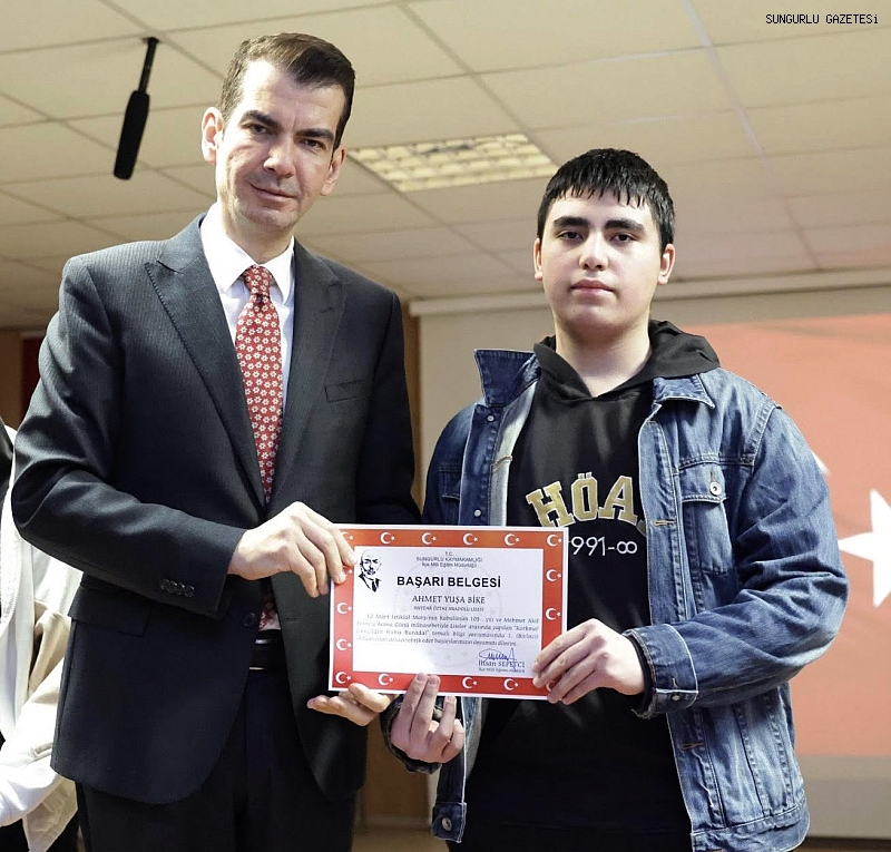 Programa Kaymakam Mutlu Köksal, Belediye Başkanı Muhsin Dere, Cumhuriyet Başsavcısı Suat Arslan, protokol üyeleri, öğretmenler ve öğrenciler katıldı. 12 Mart İstiklal Marşı'nın Kabulü ve Mehmet Akif Ersoy'u Anma Programı saygı duruşu ve İstiklal Marşı'nın okunmasıyla başladı. Günün anlam ve önemini belirten konuşmanın ardından sinevizyon gösterimi, şiirlerin okunması, piyes sunumu, oratoryo gösterimi ile program devam etti. Öğrencilere ödülleri Kaymakam Mutlu Köksal ve protokol üyeleri tarafından verildikten sonra program sona erdi.