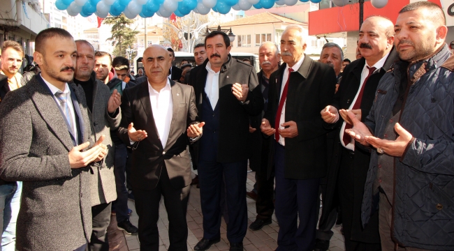 Açılışa; MHP İlçe Başkanı Yasin Şahin, CHP İlçe Başkanı Ali Erayhan, AK Parti Belediye Başkan Adayı İlyas Özkan, BBP Belediye Başkan Adayı Hüseyin Tağıl, il genel ve belediye meclis üyesi adayları ile çok sayıda vatandaş katıldı.