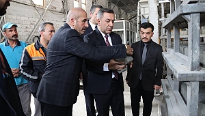 Belediye Başkanı Muhsin Dere, Başkan Yardımcısı Mehmet Yetik, teknik ve idari personelle birlikte beton santraline giderek incelemelerde bulundu.