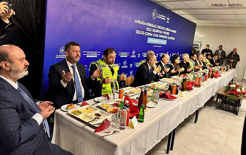 Ulaştırma ve Altyapı Bakanı Abdulkadir Uraloğlu, Ankara-Kırıkkale (Delice)-Çorum-Samsun Hızlı Demiryolu Projesi’nin Delice-Çorum etabı kapsamında Sungurlu’da ki hızlı tren şantiyesinde çalışan işçilerle iftar yaptı.