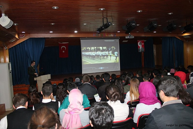 Sungurlu Garnizon Komutanı Personel Üsteğmen Osman Polat, Milli Savunma Üniversitesi (MSÜ) hakkında ilçedeki lise son sınıf öğrencilerine bilgilendirme sunumu yaptı.