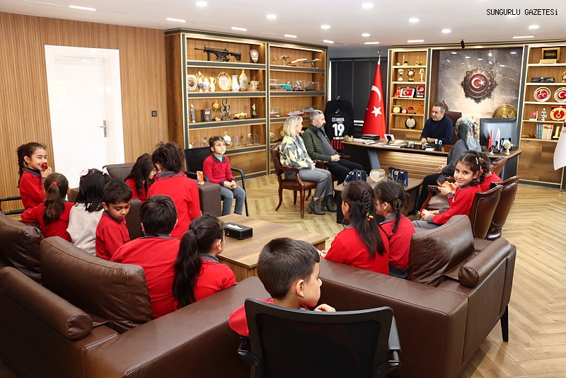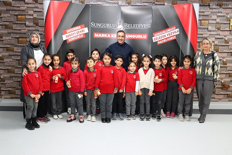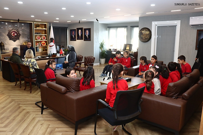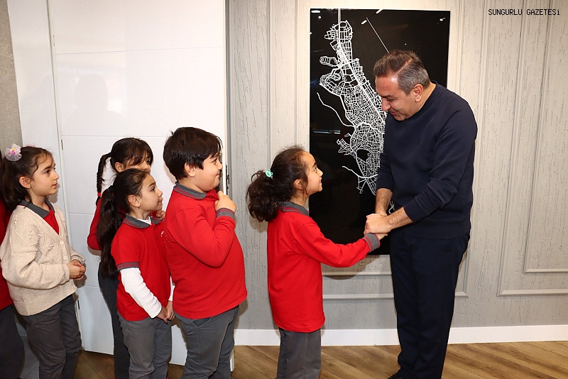 Okul Müdürü Fatma Gündoğdu, sınıf öğretmenleri Derya Küçükkavasoğlu ve Feramus Alperen Erarslan ile birlikte belediyeyi ziyaret eden öğrenciler, Başkan Dere’ye teşekkürlerini iletti.