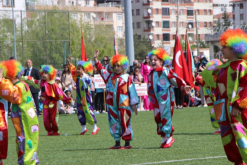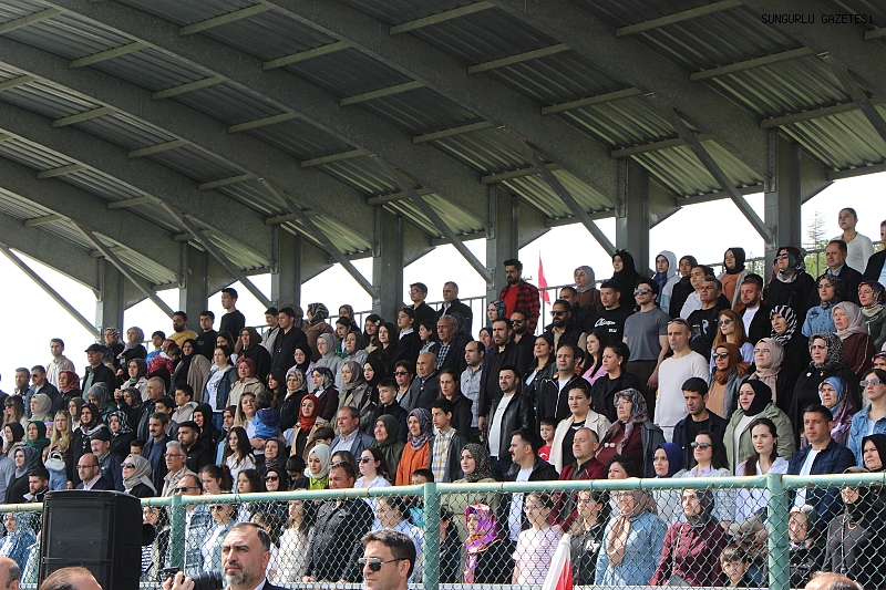 Atatürk Anıtına çelenk sunumunun ardından kutlama programı şehir stadyumunda yapıldı. Sungurlu Kaymakamı Mutlu Köksal, Belediye Başkanı Muhsin Dere ile birlikte öğrenci ve vatandaşların bayramını kutlamasıyla başlayan kutlamalar saygı duruşu ve İstiklal Marşı’nın okunmasıyla sürdü.