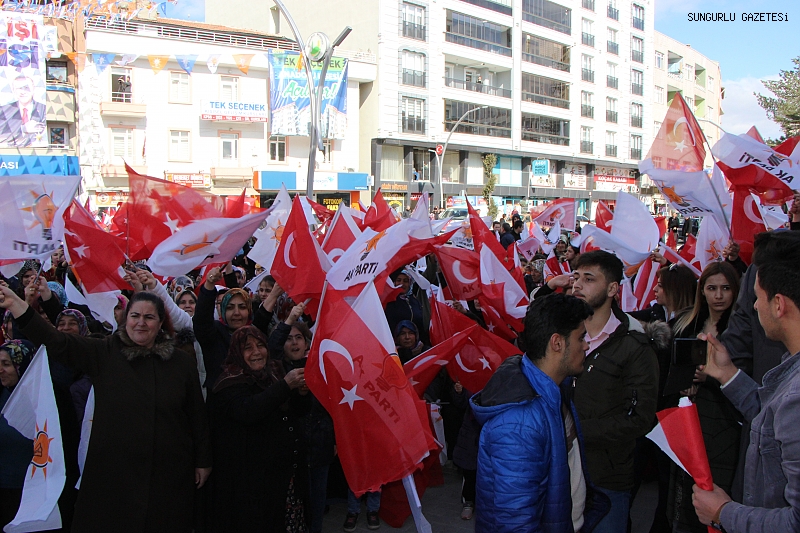 Belediyenin hizmet edebilmesi için hem ekipmana hem bir bütçeye paraya hem de kadroya makineye desteği var, bunları alabilmesi içinde merkezi hükümetin güçlü desteğine ihtiyacı var. Biz bu bölgenin çocuğuyuz, Çorum’un milletvekiliyiz, 3’ümüz söz veriyoruz. Birliğimiz beraberliğimiz devam edecek ve Sungurlu’yu şaha kaldıracağız hep beraber inşallah.” ifadelerine yer verdi.