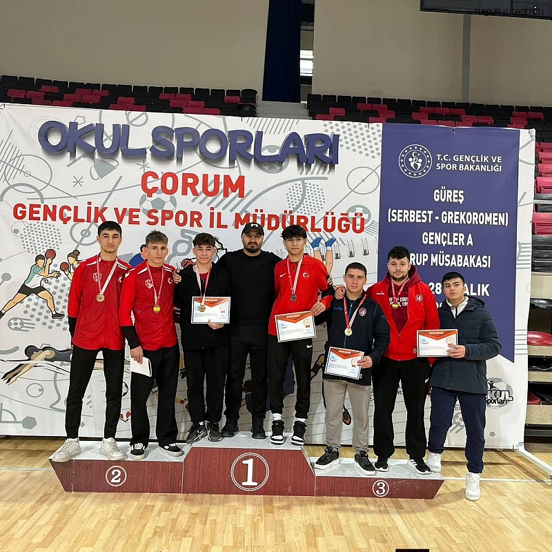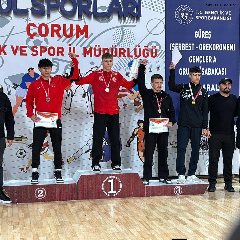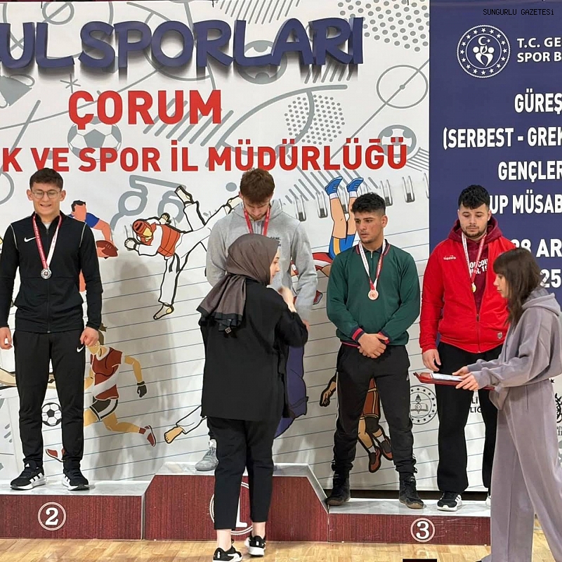 Çorum’da gerçekleştirilen Okul Sporları Genç A Grekoromen Güreş Grup Şampiyonası, Sungurlu adına büyük bir gurura sahne oldu. Şampiyonaya katılan Sungurlulu güreşçiler 48 kg – Mehmet Yunus Karınca birinci, 55 kg – Batuhan Kayar birinci, 60 kg – Utku İlbars birinci, 65 kg – Ömer Vargeloğlu birinci, 60 kg – İsmail Arda Tosun ikinci ve 80 kg – Yiğithan Alaca üçüncü oldu. Bu sonuçla Çorum Belediyespor müsabakalarda 4 birincilik, 1 ikincilik ve 1 üçüncülük ile 117 puanla takım halinde şampiyon olarak zirveye adını yazdırdı.