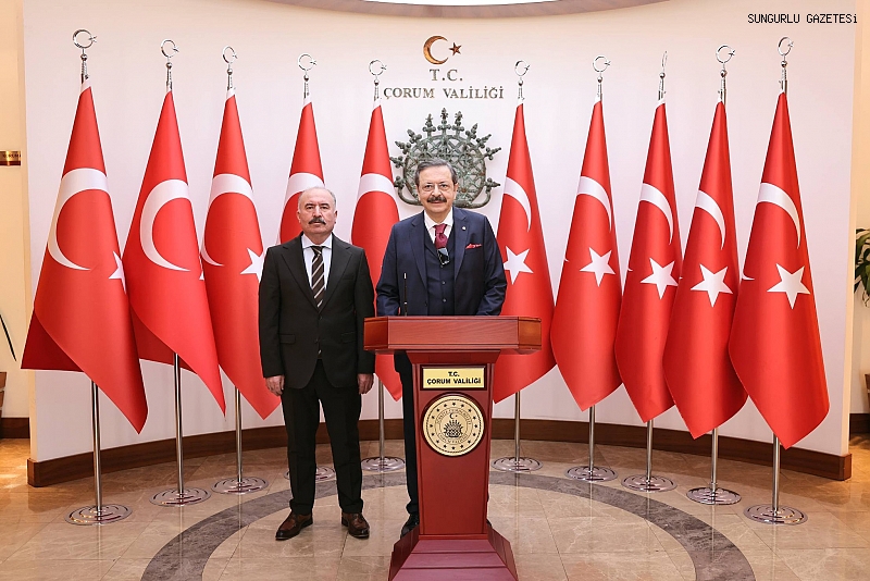 Vali Ali Çalgan’ı ziyaret eden Hisarcıklıoğlu, TOBB tarafından Çorum’a 24 derslikli TOBB-OSB Mesleki ve Teknik Anadolu Lisesi’nin kazandırıldığını hatırlatarak, Sungurlu ve Alaca ilçelerine de birer okul yapılacağını ifade etti.