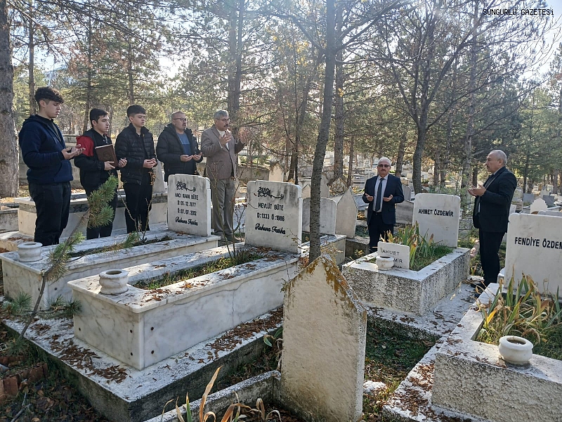 Hizmetleriyle gönüllerde yer edinmiş, yetiştirdikleri nesillerle unutulmaz izler bırakan merhum öğretmenler dualarla anıldı. Ziyaret sırasında Kur’an-ı Kerim tilaveti gerçekleştirildi, ardından tüm öğretmenler için dualar edildi. Programda, geçmişte görev yapan eğitimcilerin bıraktığı manevi mirasa sahip çıkmanın ve onların emeklerini yaşatmanın önemi bir kez daha vurgulandı.